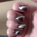 3D magnetic handmade nail polish in shimmer grey , green and purple, that is enhanced by hovering a magnet over the polish